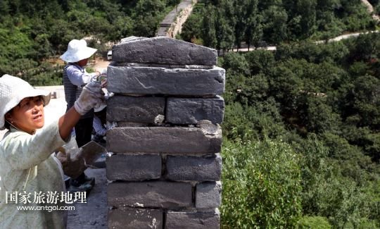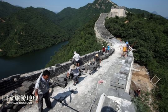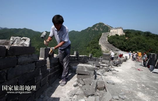 國家旅游地理 北京8月5日訊 8月4日下午,施工人員在北京懷柔西水峪古長城進行修繕。西水峪古長城始建于明代,此次修繕部分總長960米,在嚴(yán)格保障結(jié)構(gòu)安全以及原有風(fēng)貌的前提下進行恢復(fù)性修繕,修繕后將達到對游客開放攀登的標(biāo)準(zhǔn)。預(yù)計修繕工程將于今年10月底完成,屆時經(jīng)過專業(yè)部門驗收后有望對外開放。 /新華社發(fā)(卜向東 攝)