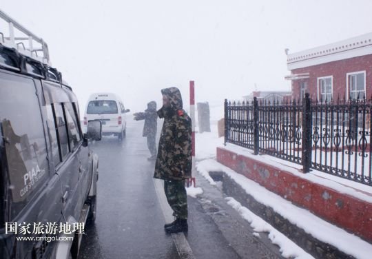 國家旅游地理 新疆喀什8月15日訊 8月14日,紅其拉甫邊檢站執(zhí)勤哨兵引導(dǎo)車輛通行。8月14日,新疆塔什庫爾干塔吉克自治縣迎來降溫降雪天氣,積雪厚度達5厘米,溫度降至零攝氏度左右。據(jù)了解,因連續(xù)降雪,314國道海拔5100米的中巴邊境紅其拉甫口岸附近約20公里路段交通受到影響。 /新華社發(fā)(韓廣寧攝)