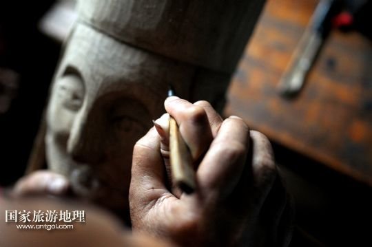 譚圣慈老人今年72歲,從22歲開(kāi)始學(xué)雕刻儺戲面具,迄今,已經(jīng)堅(jiān)持了50年。老人說(shuō),他制作的面具因工藝精湛,造型優(yōu)美,曾吸引遠(yuǎn)方的客人高價(jià)購(gòu)買。但是,卻少有人來(lái)學(xué)習(xí)面具的雕刻與制作。儺戲于2006年被列入非物質(zhì)文化遺產(chǎn)名錄之后,政府加大了保護(hù)力度,但因?yàn)槊婢叩闹谱髦芷陂L(zhǎng)、工序復(fù)雜,銷售渠道少等原因,仍無(wú)法吸引年輕人學(xué)習(xí)雕刻的興趣。為了收到心儀的徒弟,傳承這獨(dú)到的技藝,他到處發(fā)布免費(fèi)收學(xué)徒的信息。在他的堅(jiān)持下,今年暑期,鄉(xiāng)里有兩名對(duì)面具制作感興趣的男孩來(lái)到譚圣慈身邊學(xué)藝。老人高興地說(shuō):“我給他們講很多故事,就是希望他們能對(duì)此提起興趣,愛(ài)上木面雕刻,別讓這老手藝失傳了。” /新華社發(fā)