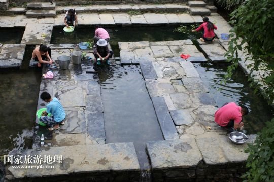 9月26日,在廣西昭平縣黃姚古鎮(zhèn),人們?cè)谝豢诠啪韵床恕⑾匆路?/p>