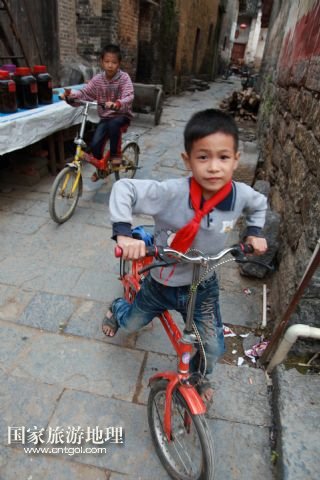9月26日,孩子們?cè)趶V西昭平縣黃姚古鎮(zhèn)騎自行車。