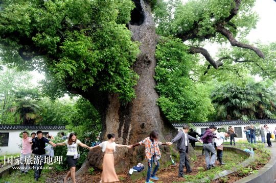 國家旅游地理 江西上饒5月18日訊 5月17日,游客在江西省德興市??阪?zhèn)海口村千年古樟旁玩耍。江西省德興市??阪?zhèn)??诖逵幸豢?800多歲“高齡”的巨型古樟樹,歷史上曾遭受過多次雷擊、火災(zāi)等,其中最近的一次發(fā)生在2010年10月1日,由于村內(nèi)孩童進(jìn)入可容納幾十人的樹洞內(nèi)玩耍,不慎引發(fā)火災(zāi),致使大火從樹洞里燒起,讓這棵千年古樟幾近滅頂。此后,當(dāng)?shù)卮迕褡园l(fā)捐款近6萬元,請來有關(guān)專家救治。經(jīng)過近4年的精心護(hù)救,如今這棵千年古樟再度逢春,枝繁葉茂,吸引了各方游客前來觀賞。 /新華社發(fā)(卓忠偉 攝)
