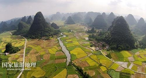 國(guó)家旅游地理 廣西柳州8月21日訊 8月20日在廣西柳州市融安縣泗頂鎮(zhèn)泗頂村航拍的田園風(fēng)光。“立秋”過后,地處桂北山區(qū)的廣西柳州市融安縣進(jìn)入稻谷收獲的季節(jié),金黃的稻田與原生態(tài)的山水風(fēng)光構(gòu)成一幅美麗的豐收?qǐng)D。新華社發(fā)(譚凱興 攝)