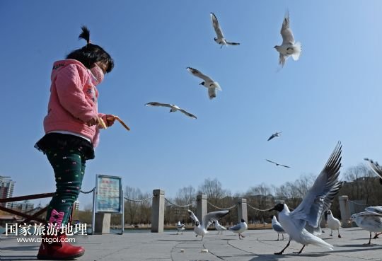 國家旅游地理 寧夏銀川3月10日訊 3月9日,在銀川市燕鴿湖,一位小朋友在喂食紅嘴鷗。近日,隨著寧夏銀川市各湖泊、濕地冰面融化,銀川市興慶區(qū)燕鴿湖迎來數(shù)百只紅嘴鷗在湖面飛翔覓食。近年來,銀川市持續(xù)加大對(duì)濕地的保護(hù)與恢復(fù),每年春季都有大批候鳥光顧,成為銀川市一道美麗風(fēng)景。 /新華社記者 王鵬 攝