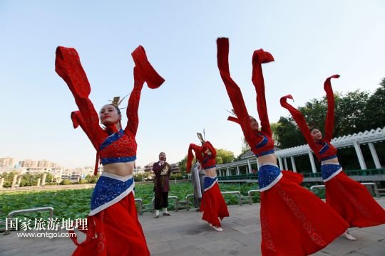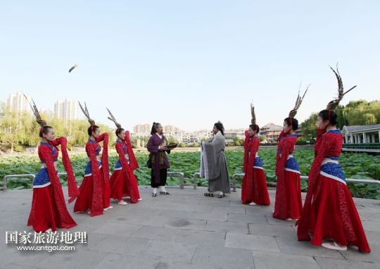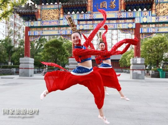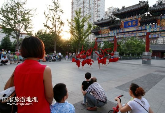 國(guó)家旅游地理 山東滕州6月14日訊 6月13日,在山東省滕州市老縣衙善國(guó)文化廣場(chǎng),滕州柳琴劇團(tuán)演員向市民展演柳琴戲。