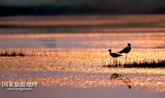 晚霞下,一對(duì)鳥兒相約黃昏后(6月17日攝)。在糧倉的西邊,有占地7000余畝的朝邑濕地,這里不僅是鳥的天堂,也吸引了大批游人游覽。