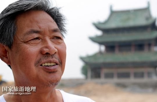 6月18日,陜西省文物保護(hù)員李潤(rùn)倉在向游人介紹宋祠修繕情況。今年已63歲的他30年如一年,義務(wù)看管保護(hù)唐塔和宋祠,被傳為佳話。