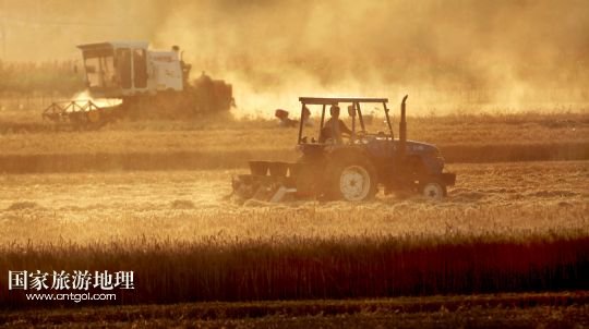 關(guān)中收獲夏糧的場(chǎng)景(6月5日攝)。朝邑鎮(zhèn)是關(guān)中糧倉的最東端,也是每年收獲夏糧最早的地方。