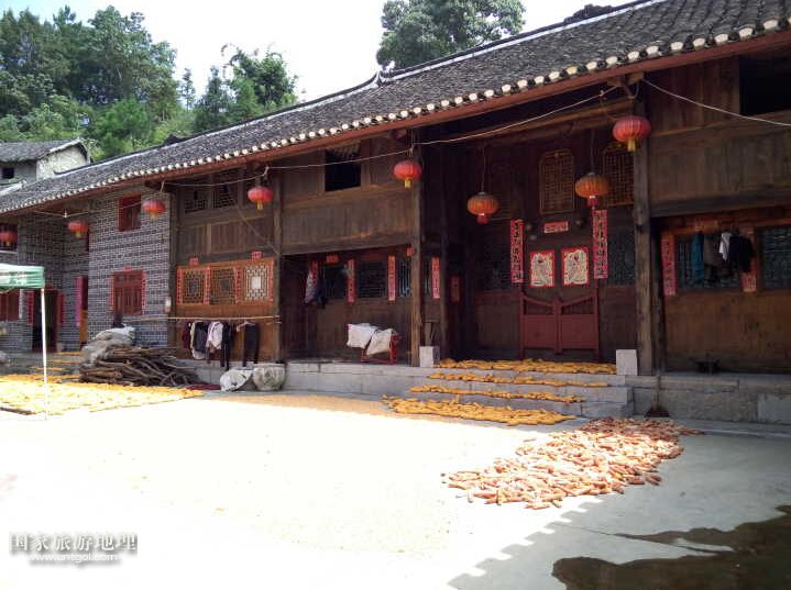 國家旅游地理 貴州黔南8月28日訊 (記者 萬棋民 攝影報道) 上圖是在黔南貴定縣的音寨,音寨是天下布依第一寨。音寨的民居依山而建,一層一層往山上延伸。從圖中可以看到,音寨民居一半是木制結構,另一半新建的則是磚石材質(zhì)。這種新與舊的連接是兩個時代的接軌,反映了改革開放前與改革開放后隨著經(jīng)濟的發(fā)展,少數(shù)民族居民的居住環(huán)境和生活水平得到了極大的提升。在圖片右邊的木制房子大門的正上方,刻著三塊密密麻麻的字,上面刻的是毛澤東語錄,而且不只這一家的木制房子上刻有毛澤主席語錄,可以看出當?shù)鼐用駥γ飨木磹壑椤?br />