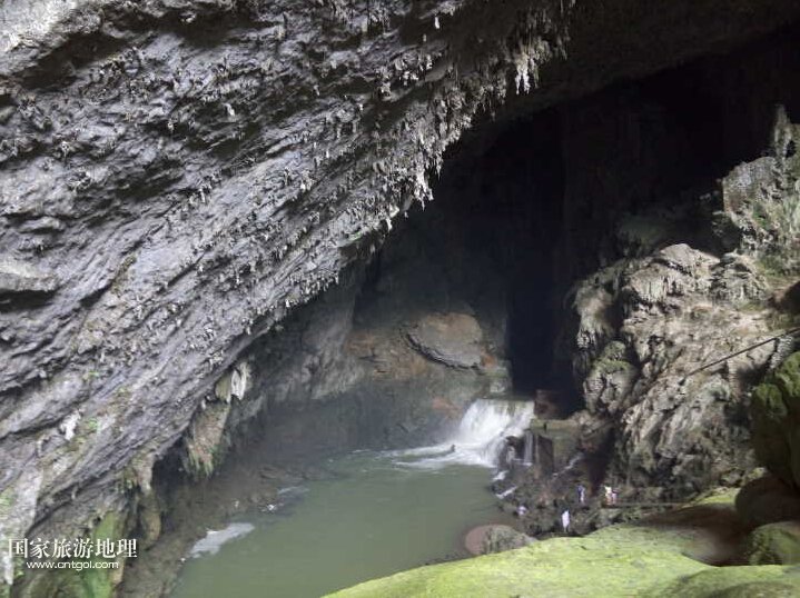 這是羅甸縣的大小井風景區(qū)的響水洞天坑,典型的喀斯特地貌景觀。這個天坑位于大井出水口西側大約200米處,坑口高500米,寬500,深200米。內(nèi)有暗河,水聲轟鳴,在坑外十里處都可以清晰聽到,故稱為響水洞天坑坑口寬敞明亮,暗河奔流,水花飛揚,氣勢磅礴,蔚然壯觀??觾?nèi)巨大的鐘乳石如寶劍懸掛在墻壁上,有的錯落城橋,有的如猛虎下山,千姿百態(tài),美不勝收。