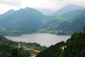 泛舟湖上,但見山環(huán)水繞,峰回路轉(zhuǎn)。放眼望去,其山巒遠(yuǎn)近高低,有翠屏而立者,有碧螺而旋者,有柱石擎天者,有丘陵迤儷者。如遇晴日,藍(lán)天白云,碧樹紅花,映入湖面,靜則含蓄,動(dòng)則朦朧。間以飛泉滴流,鳥鳴魚躍,詩(shī)情畫意,油然而生。湖壩之下,又是另一番景色。亂石突兀,三里成堆,溪流汩汩,清泉淙淙,游人入其間,采一束野花,掬一捧河水,或臥或息,或濯或浴,仰視云海變幻,聚散離合,無不心曠神怡。