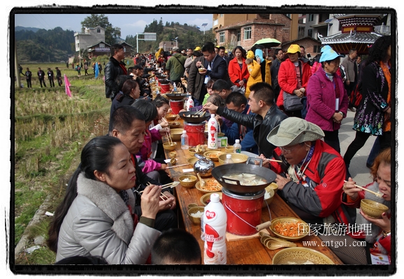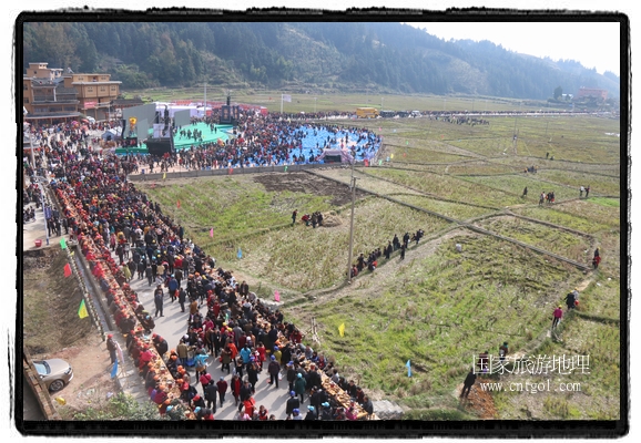 今年黎平侗年節(jié),除了延續(xù)亙古以來(lái)老百姓過(guò)侗年的各項(xiàng)傳統(tǒng)習(xí)俗活動(dòng)外,還有“天下侗家年”大型侗族史詩(shī)情景歌舞展演、侗族萬(wàn)人長(zhǎng)桌宴、招商引資推介會(huì)、七彩田園采摘體驗(yàn)、百村集市商品展銷、侗文化研討會(huì)、楊再思文化交流研討會(huì)等多項(xiàng)主題活動(dòng),其中,主打主推的“最大合攏宴”(萬(wàn)人長(zhǎng)桌宴)品牌,得到基尼斯紀(jì)錄總部到現(xiàn)場(chǎng)認(rèn)定,以1700桌合攏宴,總長(zhǎng)3.7公里,10380人同桌就餐,創(chuàng)歷史之最,成功載入《基尼斯紀(jì)錄大全》,吸引數(shù)萬(wàn)旅游客到場(chǎng)親自見證、參與、感受和體驗(yàn)這一千載難逢,氣勢(shì)恢宏的盛況。